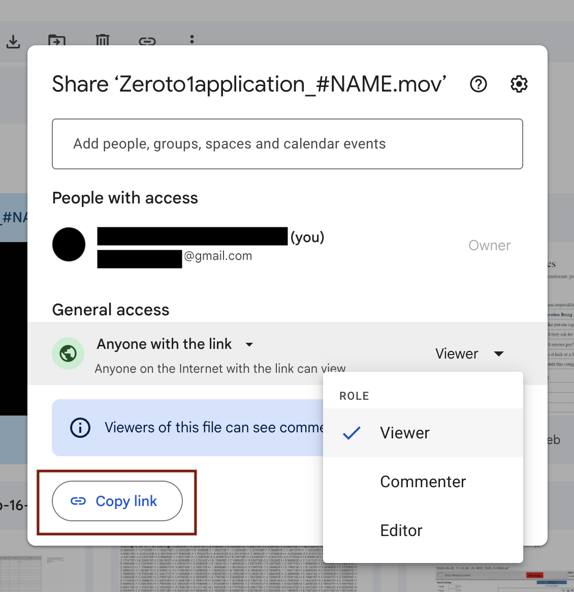 Important: Ensure that your Google Drive file is set to “Anyone with the link can view” so it can be accessed during the review process.